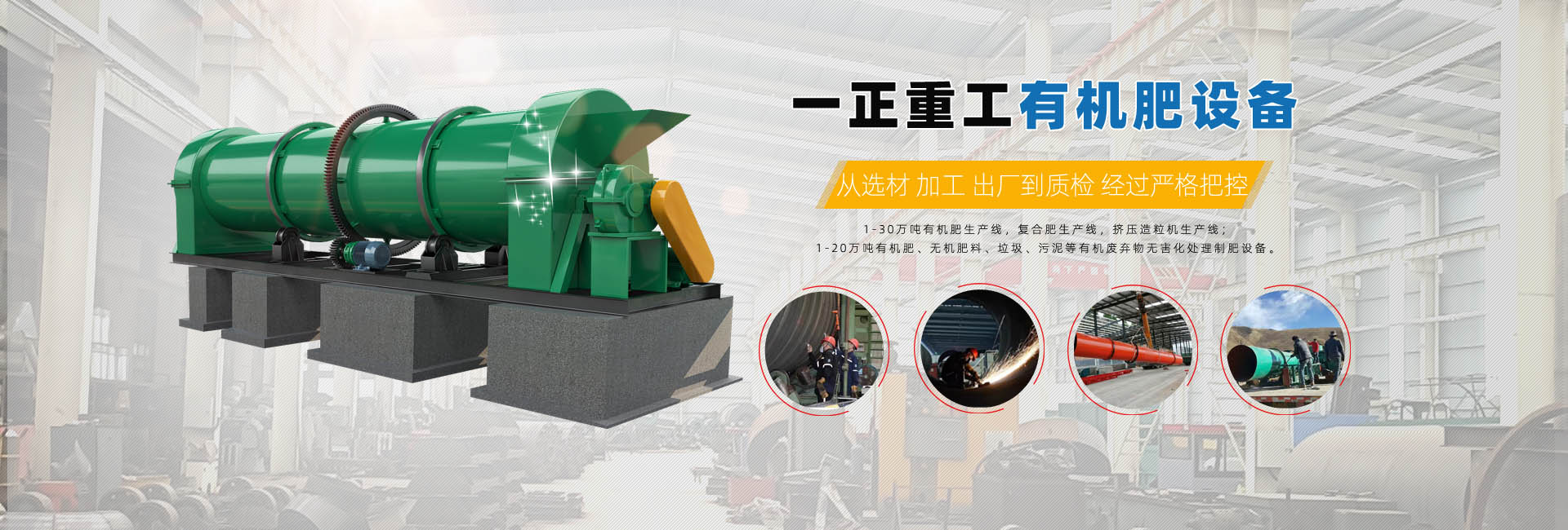 鄭州一正重工機(jī)械有限公司是一家集肥料機(jī)械設(shè)備研發(fā)、制造、銷(xiāo)售為一體的企業(yè)。工廠(chǎng)位于河南省鄭州市滎陽(yáng)工業(yè)園區(qū),占地面積8萬(wàn)平方米,擁有重型加工設(shè)備180余臺(tái),工廠(chǎng)現(xiàn)有員工360余人。 我們致力于生產(chǎn)有機(jī)肥和無(wú)機(jī)肥料設(shè)備和生產(chǎn)線(xiàn)的研發(fā),生產(chǎn)和服務(wù)。我們的設(shè)備已銷(xiāo)往全球22個(gè)國(guó)家,作為專(zhuān)業(yè)的肥料機(jī)械制造商,我們?yōu)榭蛻?hù)提供高附加值的產(chǎn)品和服務(wù),客戶(hù)可獲取相關(guān)有機(jī)和無(wú)機(jī)肥生產(chǎn)線(xiàn)的咨詢(xún)、設(shè)計(jì)、生產(chǎn)、安裝、培訓(xùn)、配件和維護(hù)等一整套完整解決方案。 鄭州一正始終以高水平的整體思維,以國(guó)際化標(biāo)準(zhǔn)完善產(chǎn)品管理,我們相信為客戶(hù)創(chuàng)造價(jià)值就是為自己創(chuàng)造價(jià)值,我們始終以高附加值的產(chǎn)品和服務(wù)來(lái)回報(bào)客戶(hù)。