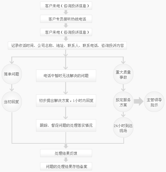 公司要求服務(wù)人員時刻為客戶著想,主動與客戶保持長期聯(lián)系,掌握產(chǎn)品使用情況,及時趕赴故障現(xiàn)場,切實、快速、有效解決問題。