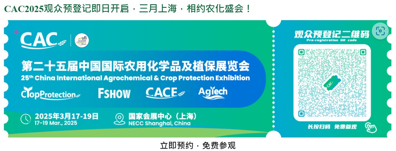 誠摯邀請您參加 2025年中國國際農(nóng)用化學(xué)品及植保展覽會(CAC 2025)